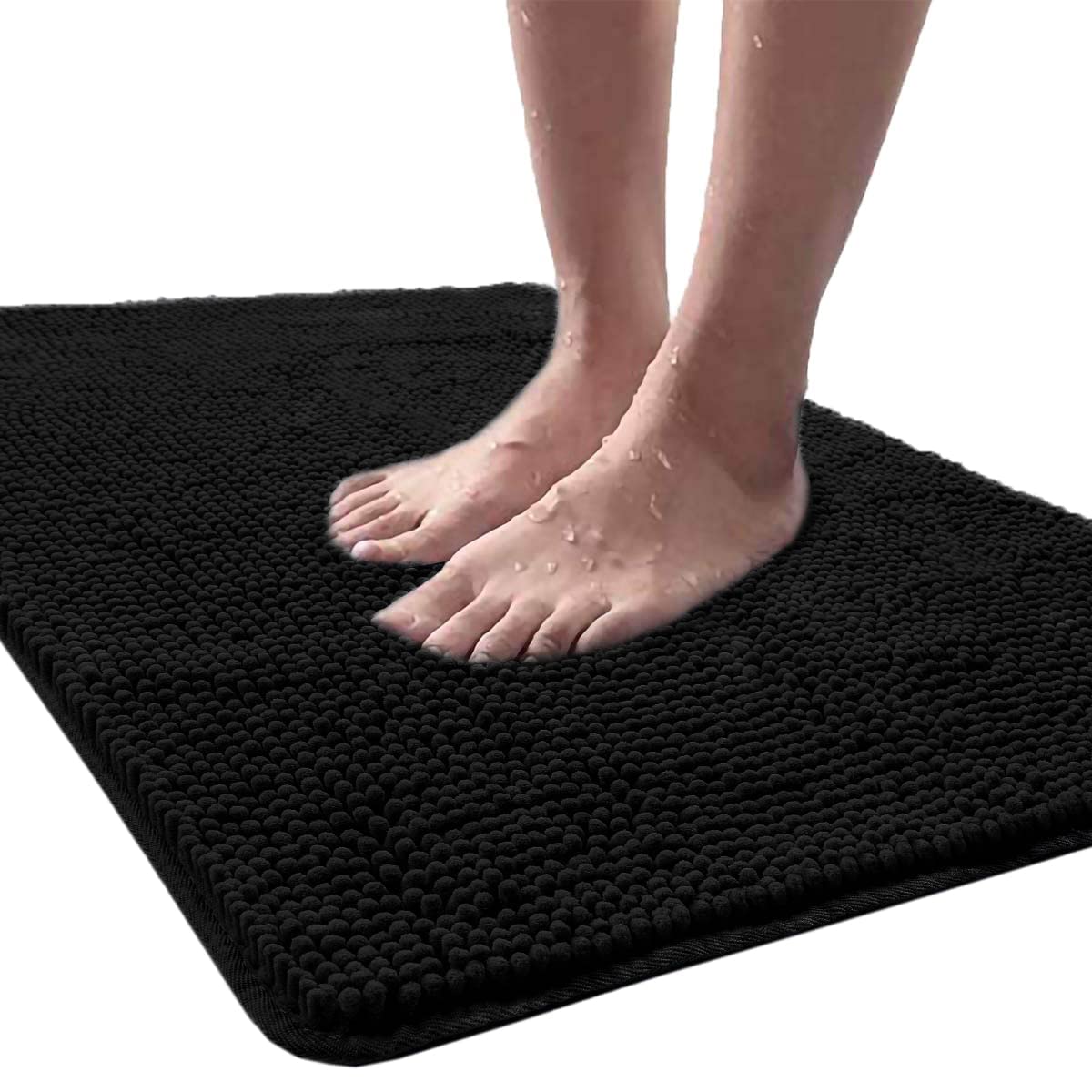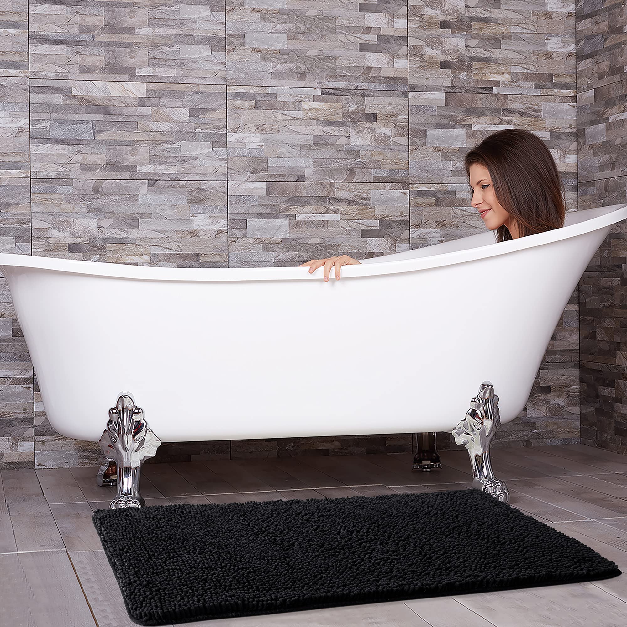 junovo Luxury Bathroom Rug Shaggy Bath Mat 20 x 30 Inch, Washable Non Slip Bath Rugs for Bathroom Shower, Black
